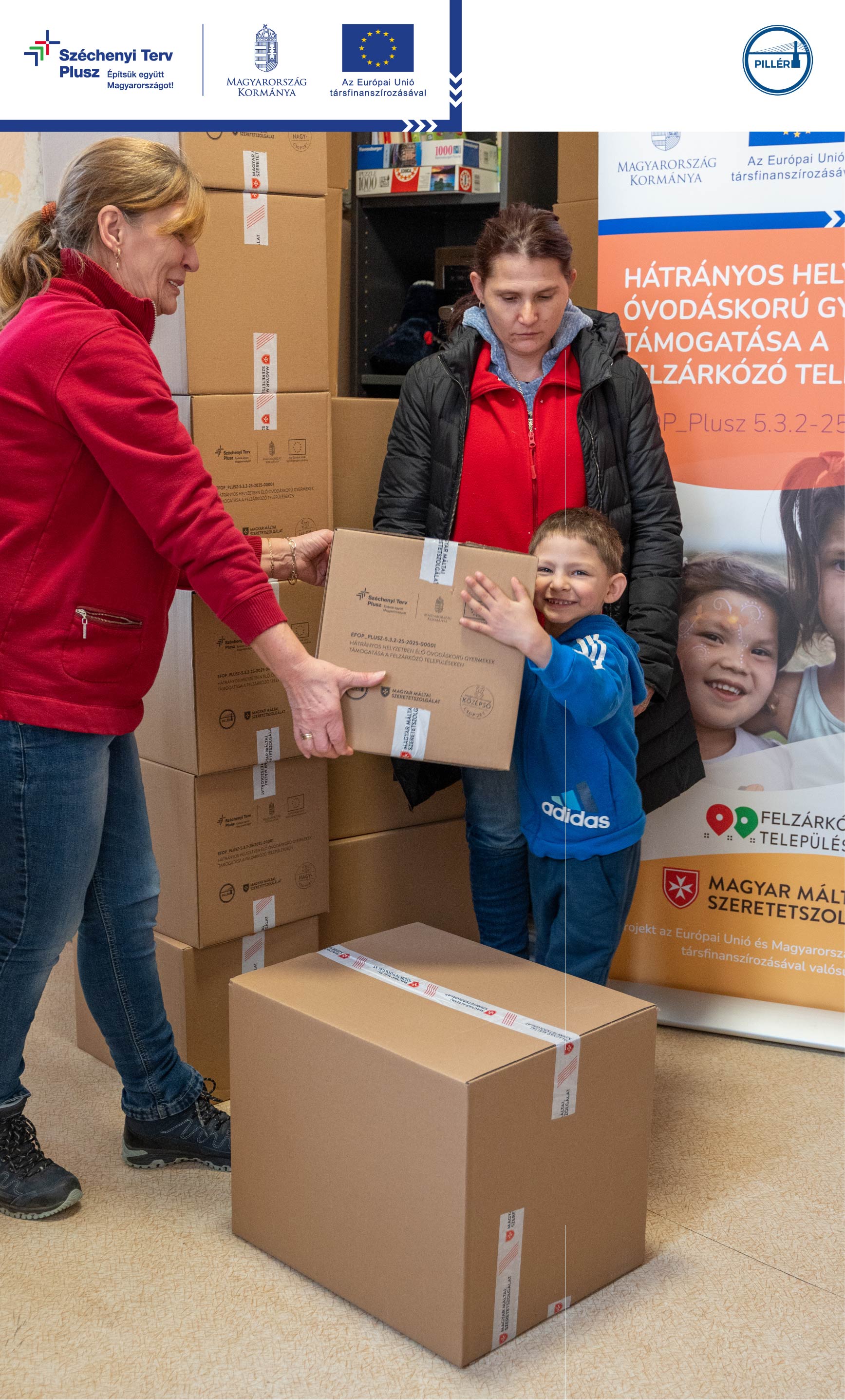 2026. február 15-én sikeresen lezárult az első csomagosztási kör a Magyar Máltai Szeretetszolgálat „Hátrányos helyzetben élő óvodáskorú gyermekek támogatása a Felzárkózó Településeken” című, EFOP Plusz-5.3.2-25-2025-00001 azonosítószámú Pillér projektjében, mely keretében több mint 10.000 db csomag került kiosztásra.